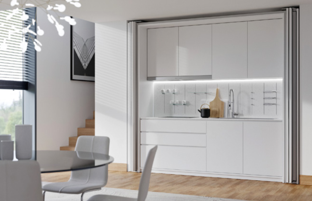 FurnSpin is a piece of furniture that transforms from closed to open with a simple twist, redefining the concept of storage space. The free online configurator shows at a glance whether the piece of furniture is suitable for FurnSpin, checks for collisions, and provides all drilling locations and dimensions in a PDF file. Available in S, M, and XL versions to accommodate various furniture sizes and weight classes, accessories include a cable management system for invisible power supply.