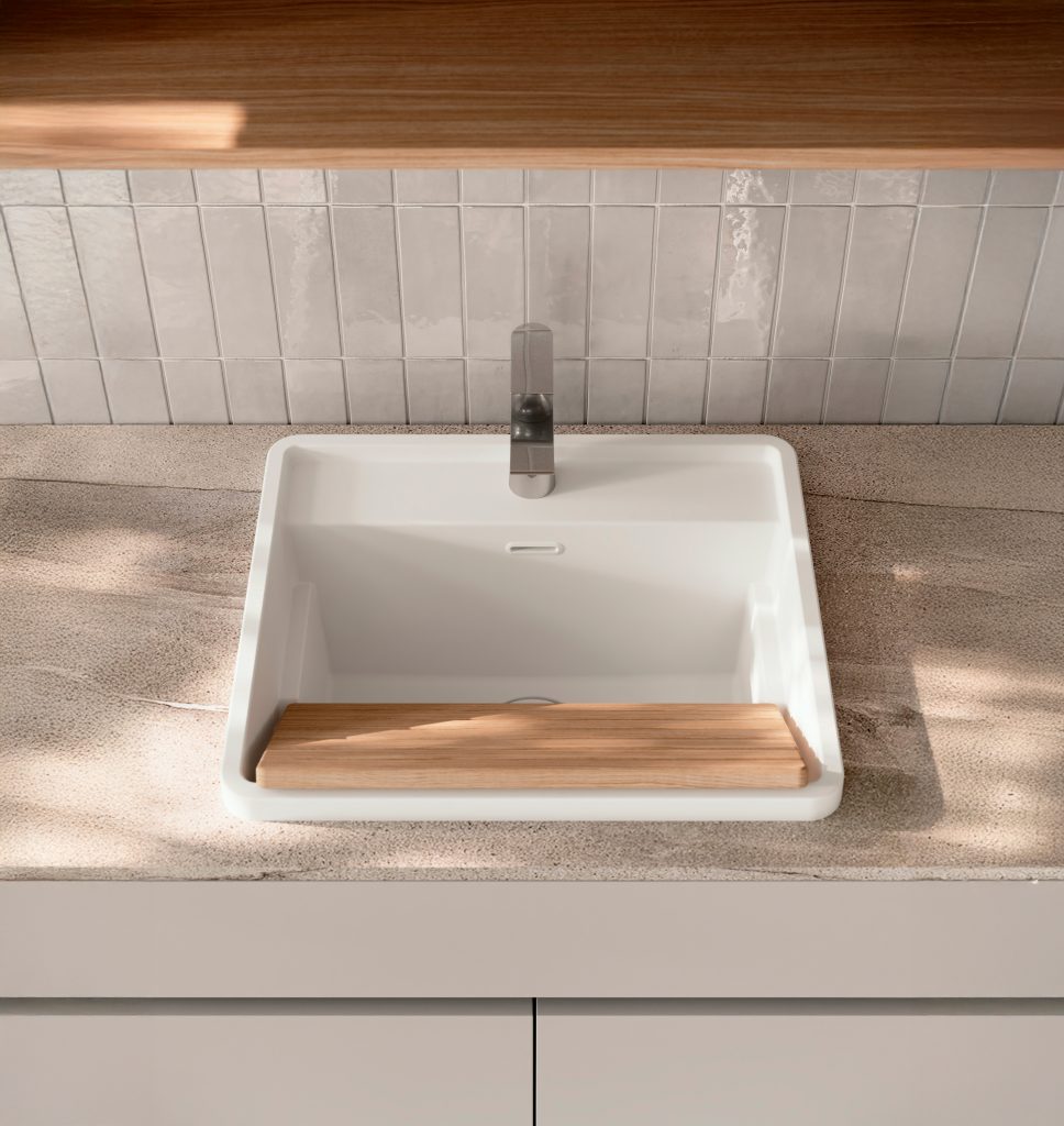 Laundry is the Duratek sink designed to organize a home laundry room hidden behind a retractable wall. Winner of the 2025 Red Dot Design Award and the 2025 iF Design Award, Laundry, with its multifunctional accessory —from washing to a confortable countertop — interprets the growing search for integrated and intelligent solutions capable of combining organization and aesthetic sensitivity even in less noble spaces such as utility rooms.