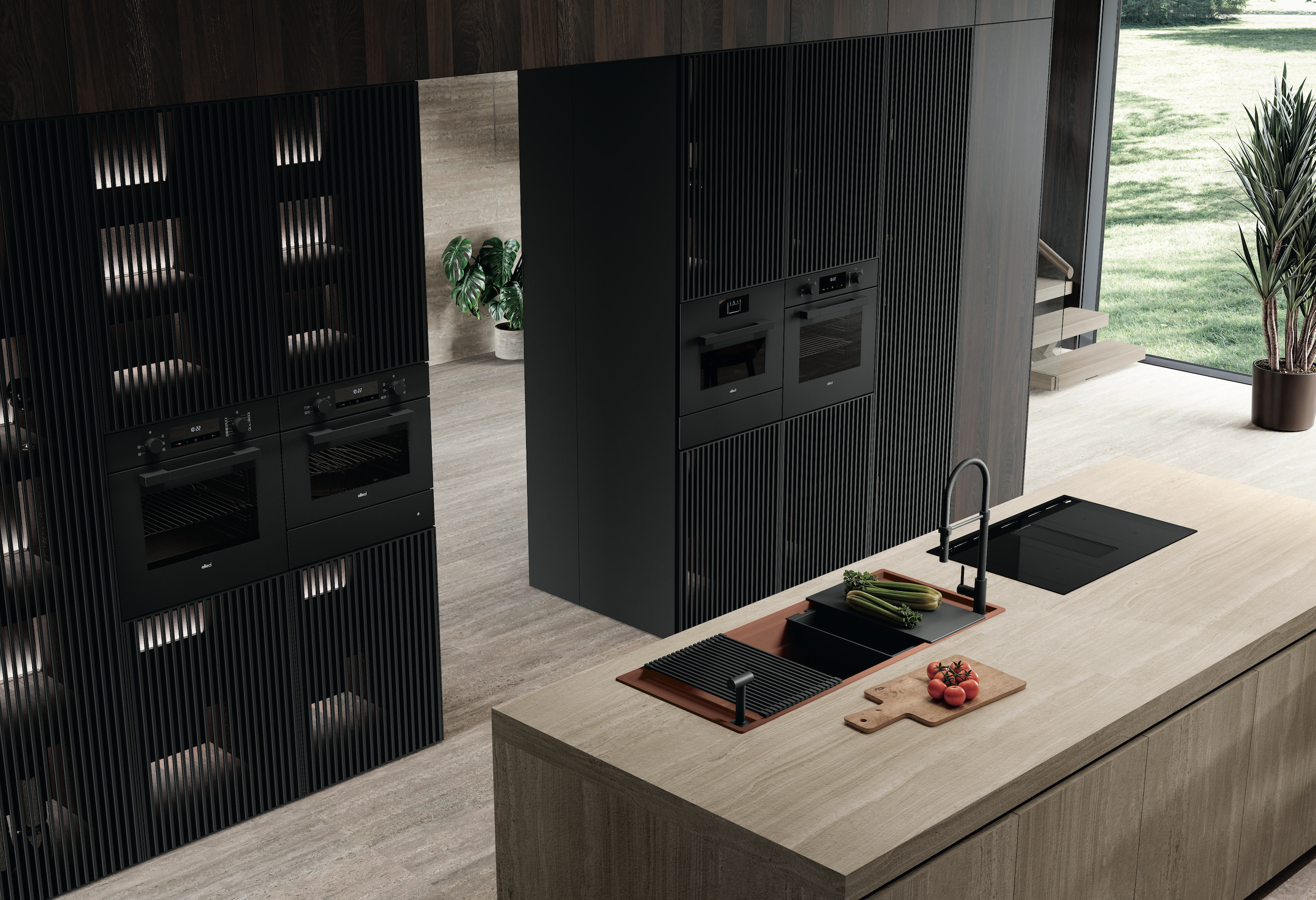 Sipario è la nuova gamma di elettrodomestici a incasso di Elleci, dai piani cottura ai forni, alle cantinette per i vini, con finitura total black matt che unisce design e tecnologia