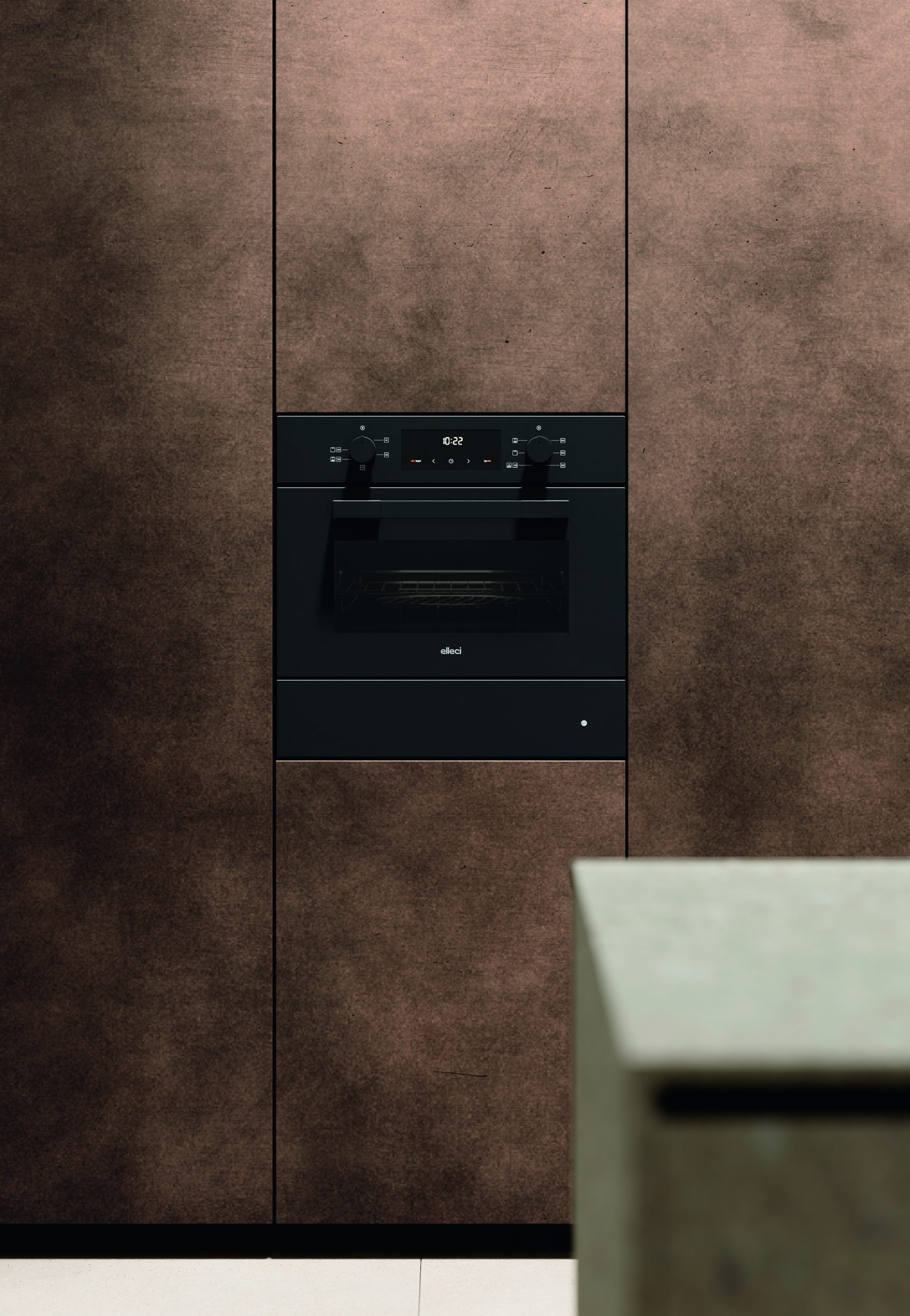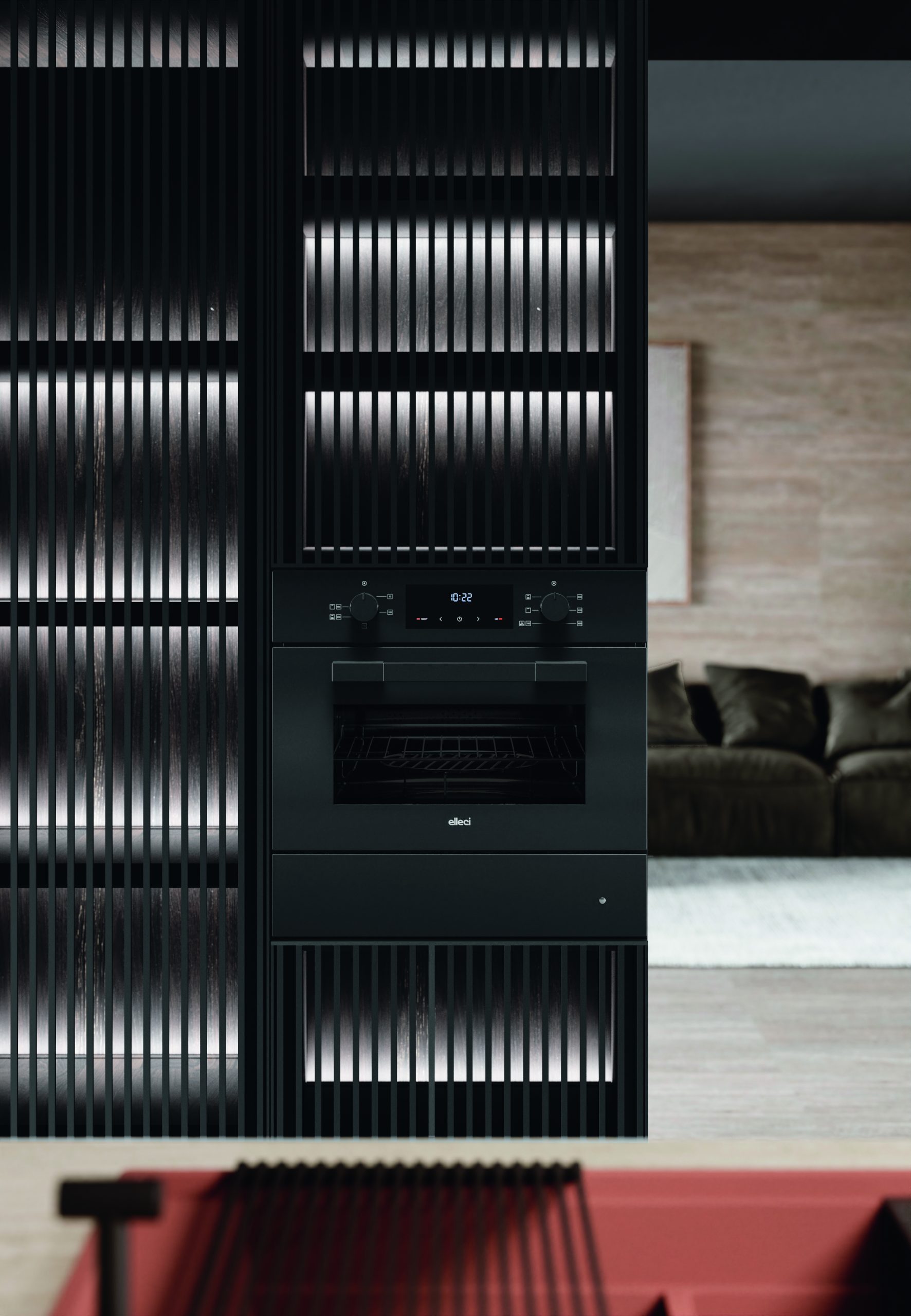 Una collezione di elettrodomestici a incasso caratterizzata da un’estetica total black matt, pensata per una cucina sempre più hi-tech, performante e smart, dove i confini tra il domestico e il professionale si fondono: è la nuova linea Sipario di Elleci, che include piani cottura, forni e cantinette. Elementi comuni sono le finiture in metallo, vetro e vetroceramica nero opaco, i display con LED, i vetri oscurati e le manopole soft touch che delineano una family line coerente e armonica.