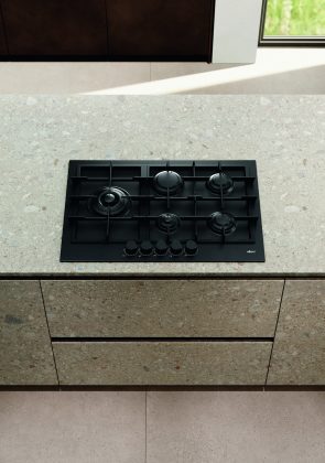 Completa il catalogo il piano a induzione aspirante da 80 cm a quattro zone cottura, con un sistema di aspirazione caratterizzato da un innovativo flap di aspirazione a 360° che garantisce un’efficace rimozione di fumi e odori, supportato da filtri lavabili e rigenerabili che ne prolungano la durata. Inoltre, è presente un vassoio di raccolta liquidi da 5 litri per raccogliere eventuali fuoriuscite, facilitando la pulizia. Per gli amanti delle soluzioni più classiche, Sipario include anche due versioni di piani cottura a gas da 75 cm con quattro fuochi oltre al wok, che nelle due diverse versioni è collocato in posizione centrale o a sinistra