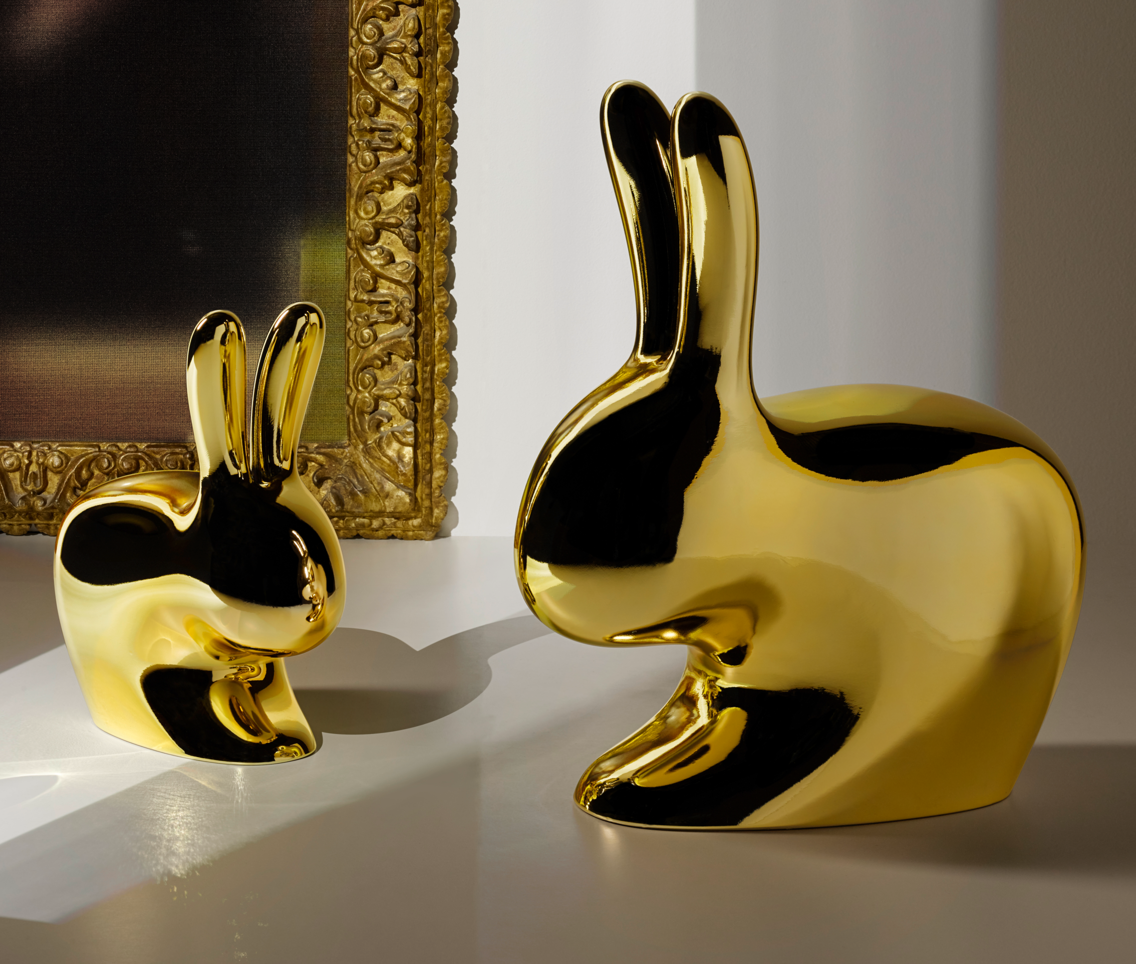 Rabbit Chair per adulti e bambini nella finitura Metal Finish, prodotta da Qeboo e disegnata da Stefano Giovannoni