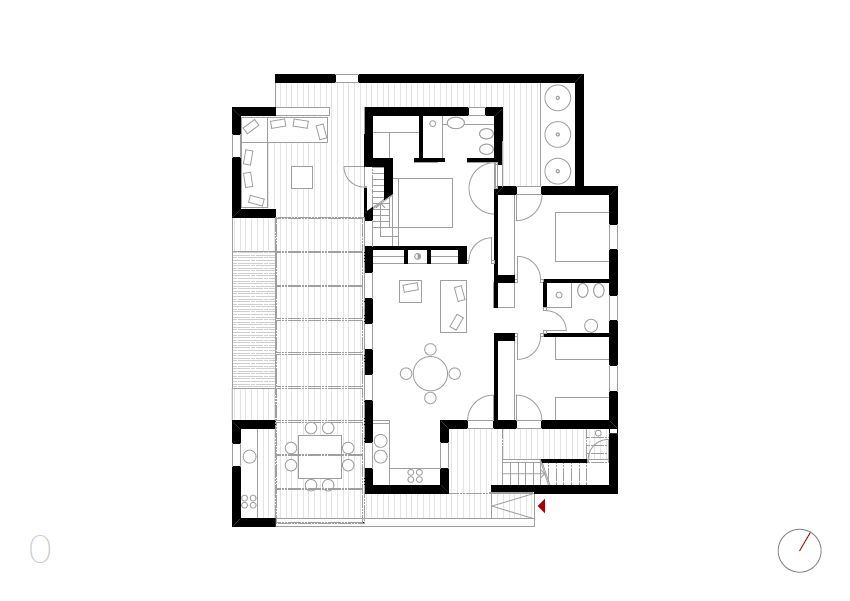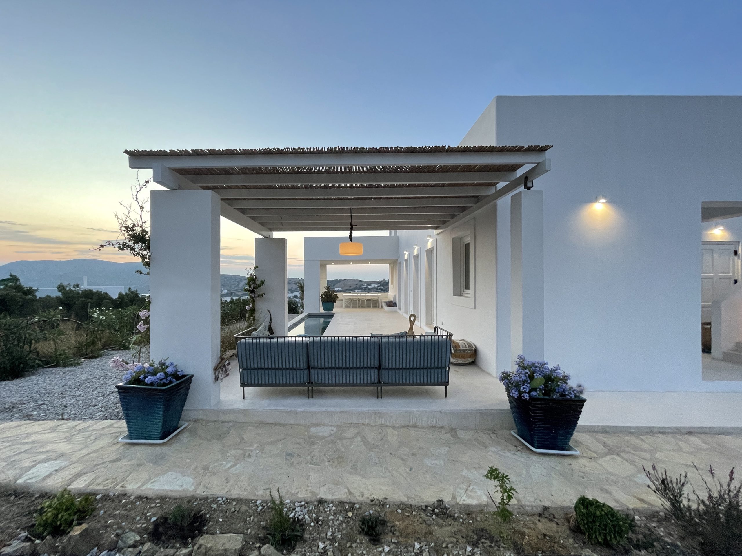 Presupposto fondamentale è stato "l'attento studio dei venti e in particolare del Meltemi che in alcuni momenti dell’anno soffia talmente forte da limitare le attività all’aperto", dice Mauro Rivolta. "Quindi, al nostro normale approccio alla progettazione bioclimatica tipica dello Studio Ecoarch (collocazione all’interno del lotto, esposizione ai raggi solari, rapporto pieni/vuoti, ecc…) abbiamo aggiunto, in questo caso, anche una particolare attenzione nel generare degli spazi aperti come patii e terrazze, ma protetti dai venti", continua il progettista."Gli spazi della casa si espandono quindi all’esterno e incorniciano scorci suggestivi del paesaggio, ma sono al contempo al riparo dal Meltemi, vento che può spirare con particolare intensità per lunghi periodi dell’anno".