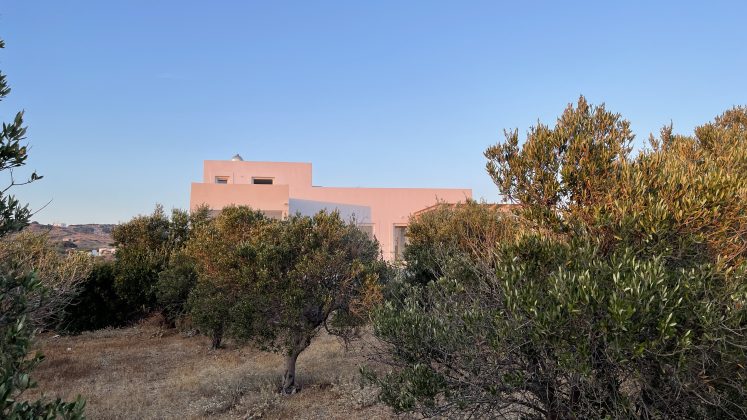 "L’approccio al progetto sottintende la ricerca di sintesi tra il linguaggio mediterraneo tradizionale dell’isola, il disegno contemporaneo e le ragioni del sito. Il risultato è un’architettura estremamente introversa, con prevalenza dei pieni rispetto ai vuoti. Le aperture, accuratamente misurate, inquadrano scorci del paesaggio circostante. Il volume è reso ancora più puro, oltre che dall’utilizzo dell’intonaco bianco, anche dall’inserimento del tetto piano".