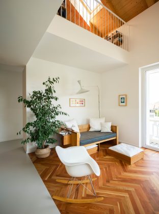 Risale agli anni 50’ questa villa in provincia di Cuneo, che è stata trasformata in una casa-studio dagli stessi architetti che la abitano e che si contraddistingue per un elemento unico: un cubo inserito nella zona giorno, un volume ligneo apri-e-chiudi che nasconde una mini cucina. Per i due proprietari - gli architetti Claudio Bosio ed Elisa Mensa _ Fluido Architettura - la ristrutturazione globale della casa è stata anche un’occasione per sperimentare la progettazione di ambienti articolati e accostare tra loro finiture e materiali vintage e nuovi. Il risultato dell'intervento è un'abitazione in cui vige una distribuzione spaziale fuori dai soliti schemi, soprattutto per quanto riguarda la zona giorno e la camera della figlia dei due proprietari, che comprende tre livelli soppalcati grazie alle doppie altezze. Centro ideale e fisico della casa è il soggiorno, imperniato su un vero fulcro: il cubo in rovere che contiene la cucina.