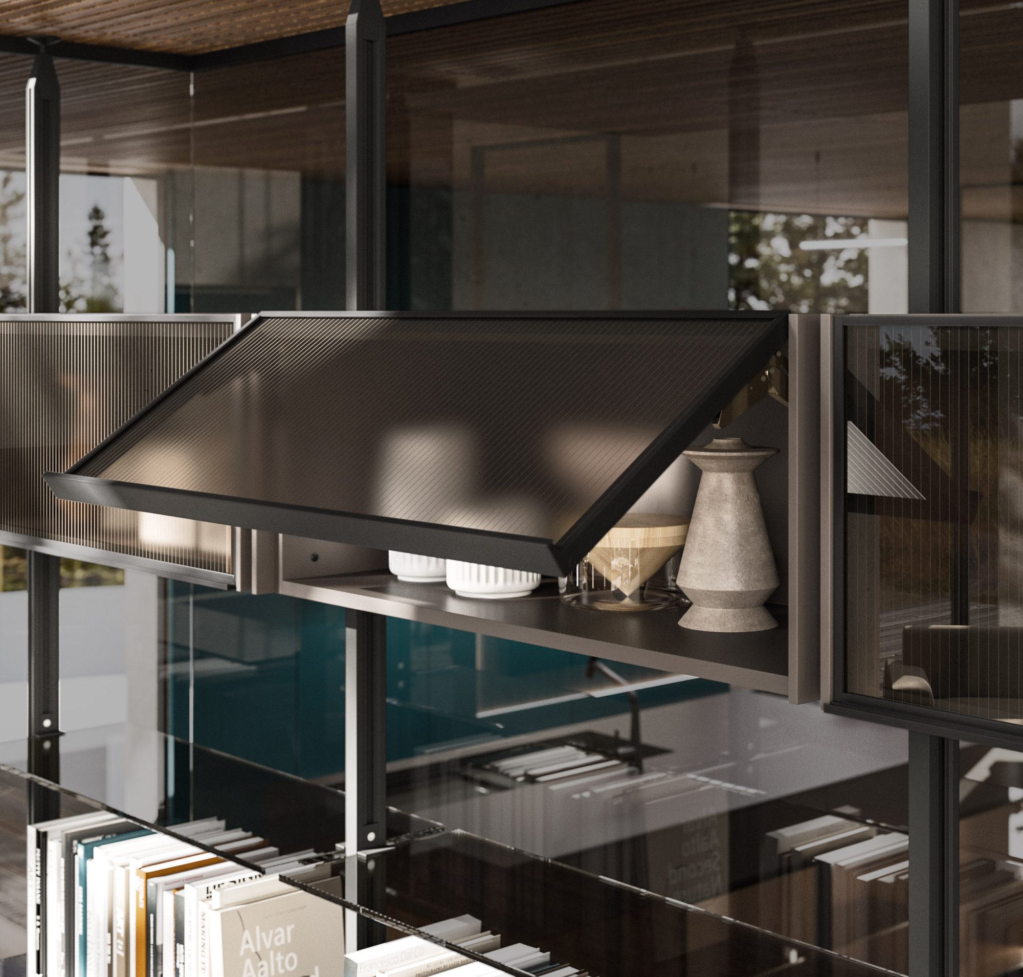 -design open e minimalista capace di strutturare gli ambienti senza appesantirli ed è ideale per living, cucina, ingresso o zone multifunzione;